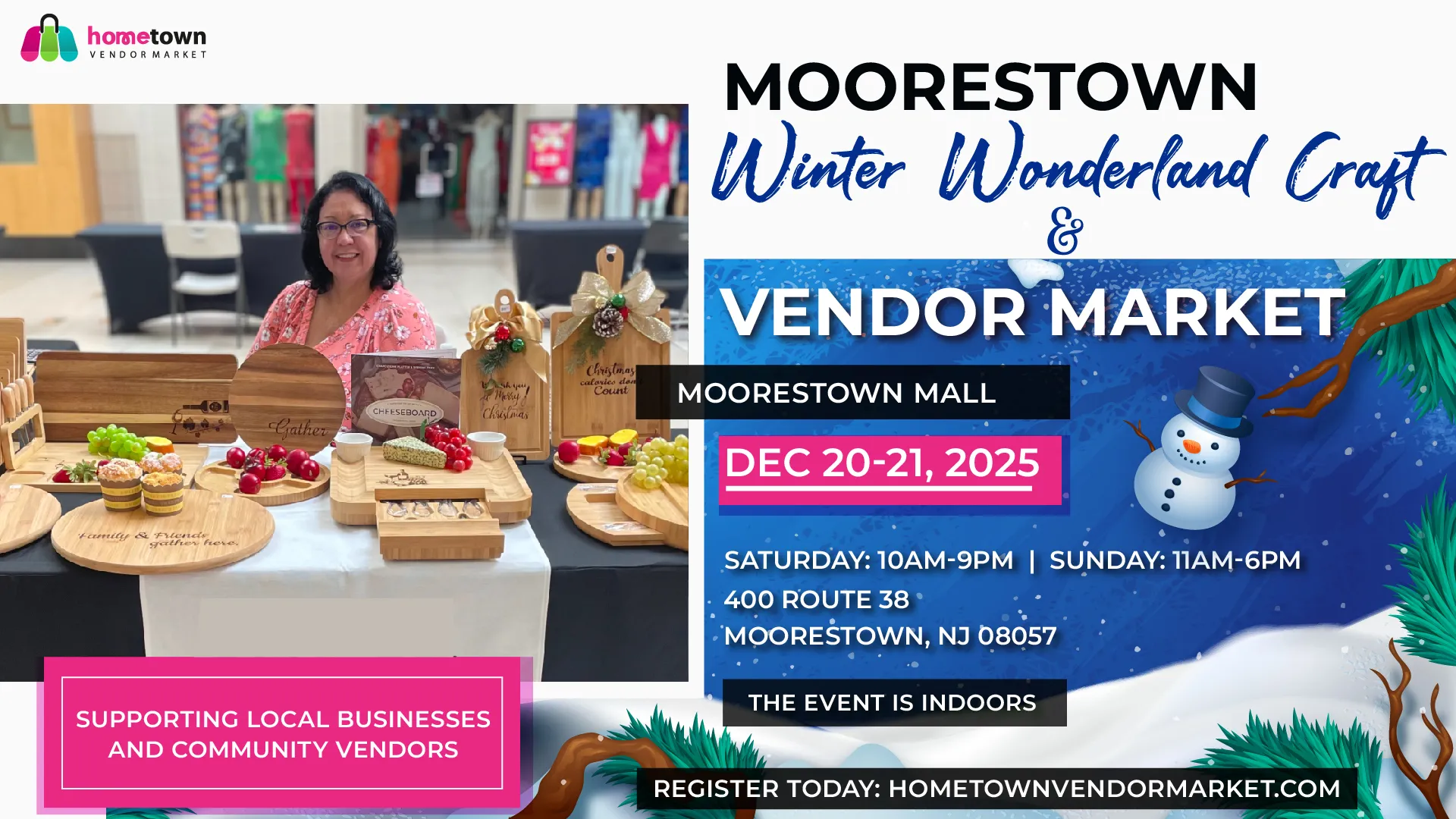 NEW JERSEY december 20 – 21, 2025 december 20 – 21, 2025 | outDOORS Moorestown Winter Wonderland Craft and Vendor Market Moorestown Mall, 400 Route 38, Moorestown, NJ 08057 Apply now