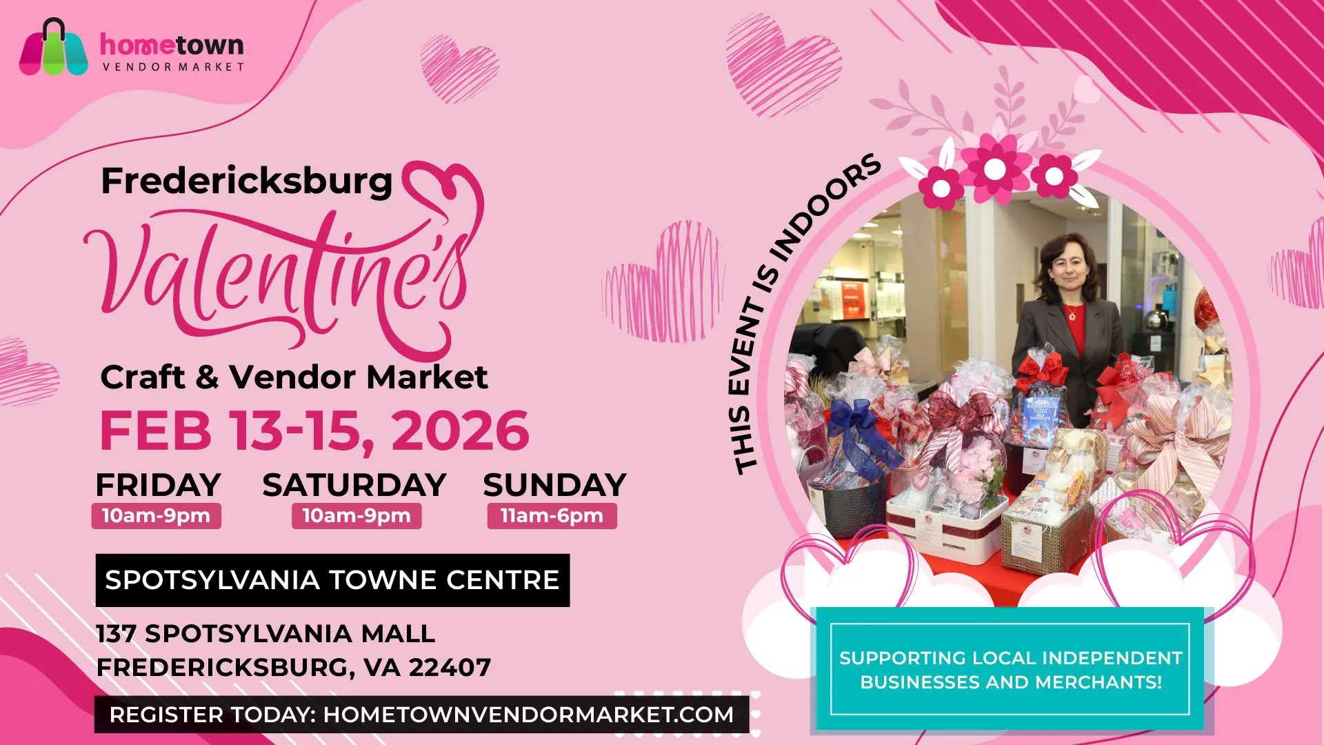 virginia feb 13 – 15, 2026 feb 13 – 15, 2026 | inDOORS Fredericksburg Valentines Craft & Vendor Market Spotsylvania Towne Centre, 137 Spotsylvania Mall, Fredericksburg, VA 22407 Apply now
